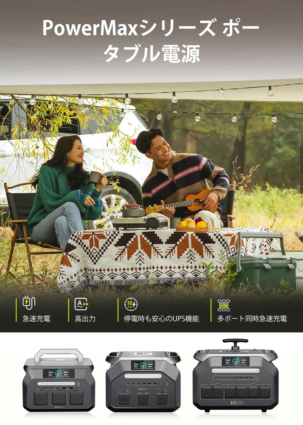 大容量で,停電時でも普通の生活が維持できます。LiFePO4電池の4000回サイクル保証に惹かれ、5年使い続ける覚悟で購入。太陽光併用時は発電効率99%と表示され、技術力の高さを実感!